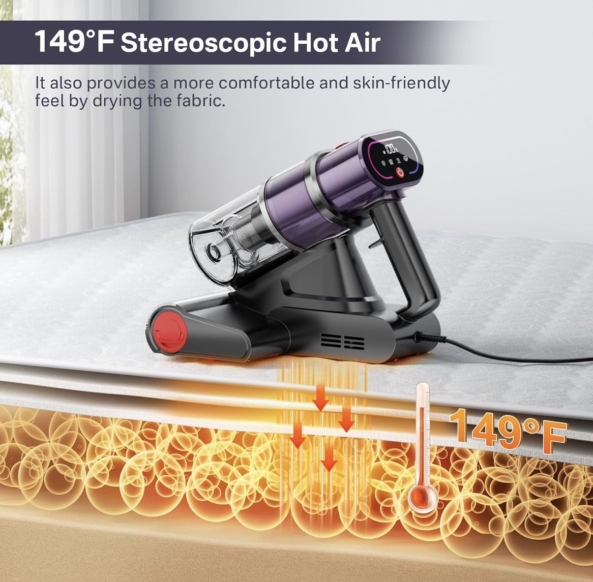 Mattress Vacuum Cleaner with Smart Dust Sensor, UV Bed Vacuum Cleaner with Hot Air, 16Kpa Strong Suction 500W & 45000Rpm Brushroll Rotation & Ultrason