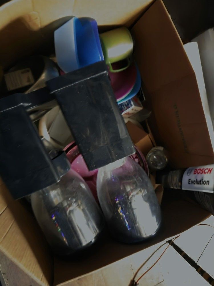 Plastic bowls, cereal dispensers, glasses