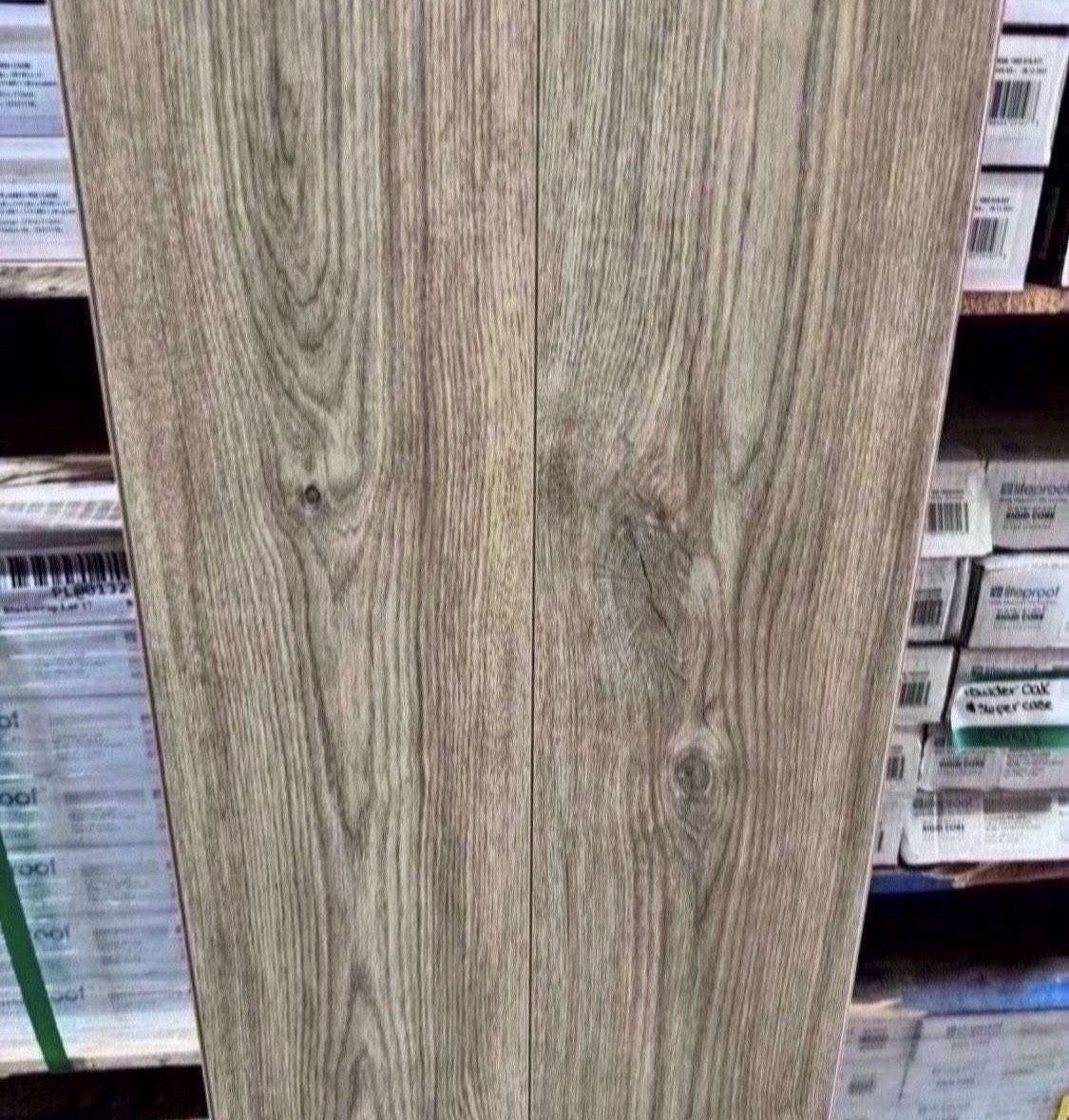 New TrafficMaster - Tully River Oak 7 mm Tx 7.56 in. W Water Resistant Laminate Flooring (26.56 sq.ft./case) *Water Resistance *Click and Lock 1 Pallet available 16 cases, total of 424 sq.ft. Asking $350 for the pallet Located on 35th ave and Thomas