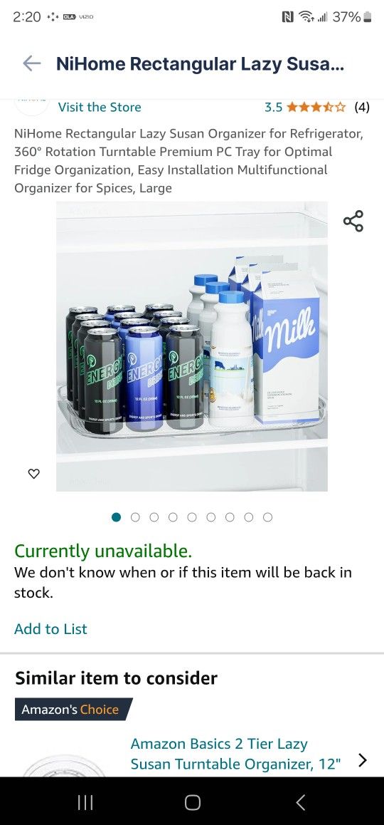 NiHome Rectangular Lazy Susan Organizer for Refrigerator, 360° Rotation Turntable Premium PC Tray for Optimal Fridge Organization, Easy Installation M