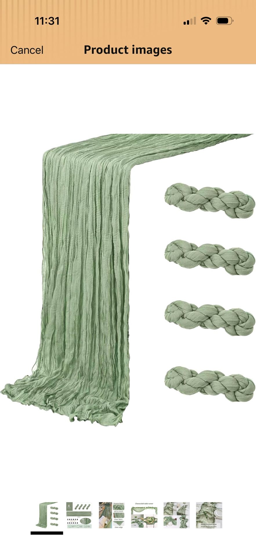 12 pcs Sage Green Cheesecloth Table Runner 20 x 120 inch Gauze Table Runners 10 FT Long,Semi Sheer Boho Cheese Cloth Fabric Table Runner Bulk for Wedding,Party,Baby Shower,Bridal Shower Decoration