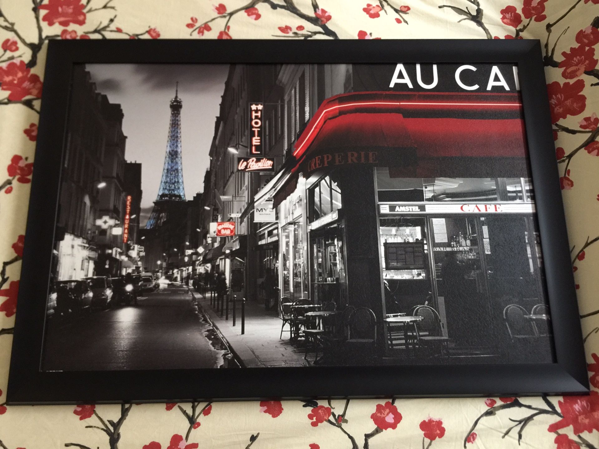 • LIKE NEW • Rue Parisienne Paris France Eiffel Tower Hotel Cafe Street View Poster Framed • High Quality Print • Black Frame •