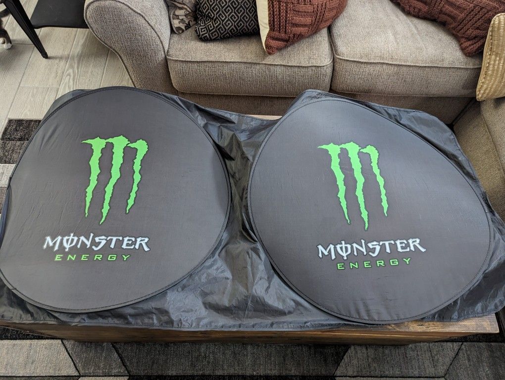 Windshield Visor - Monster Energy Drink Tab Giveaway - this sun shade is from the second monster tab giveaway, good condition and functional. Universal fit.