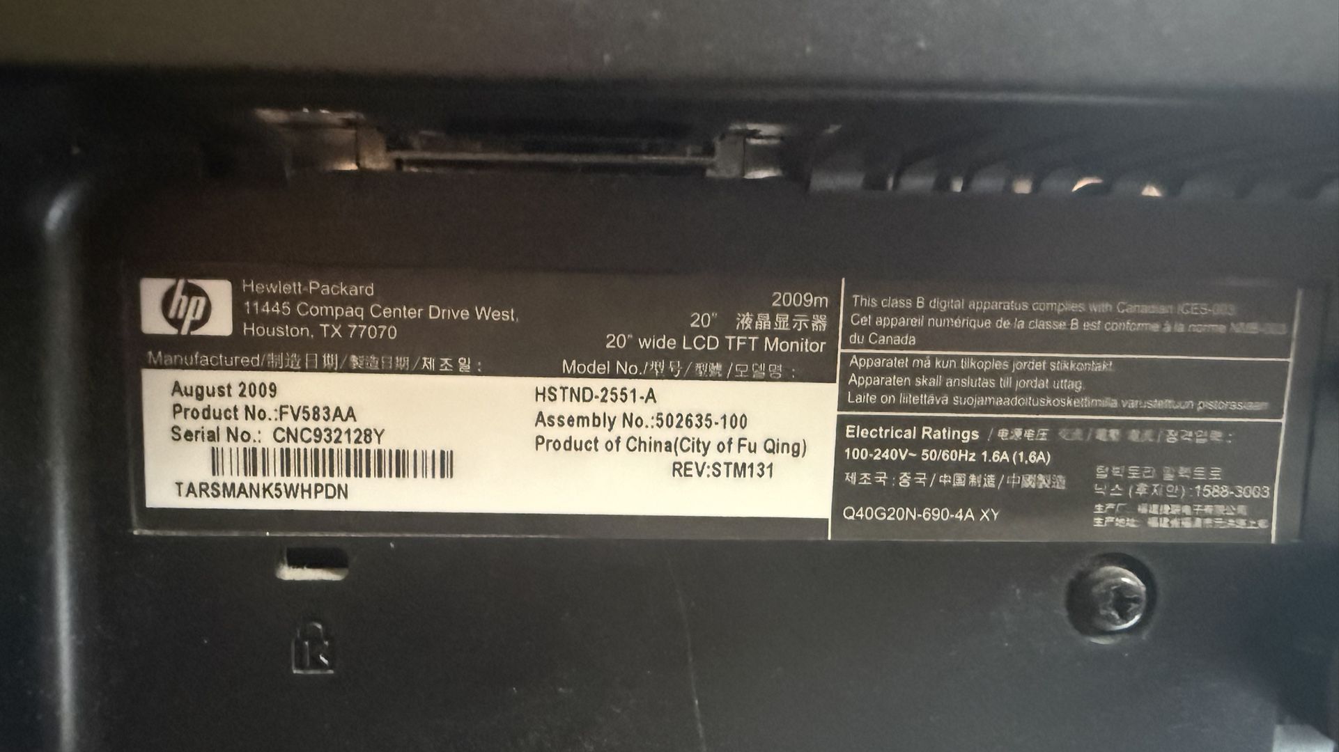 HP 2009M LCD Monitor FV583AA, HSTND-2551-A