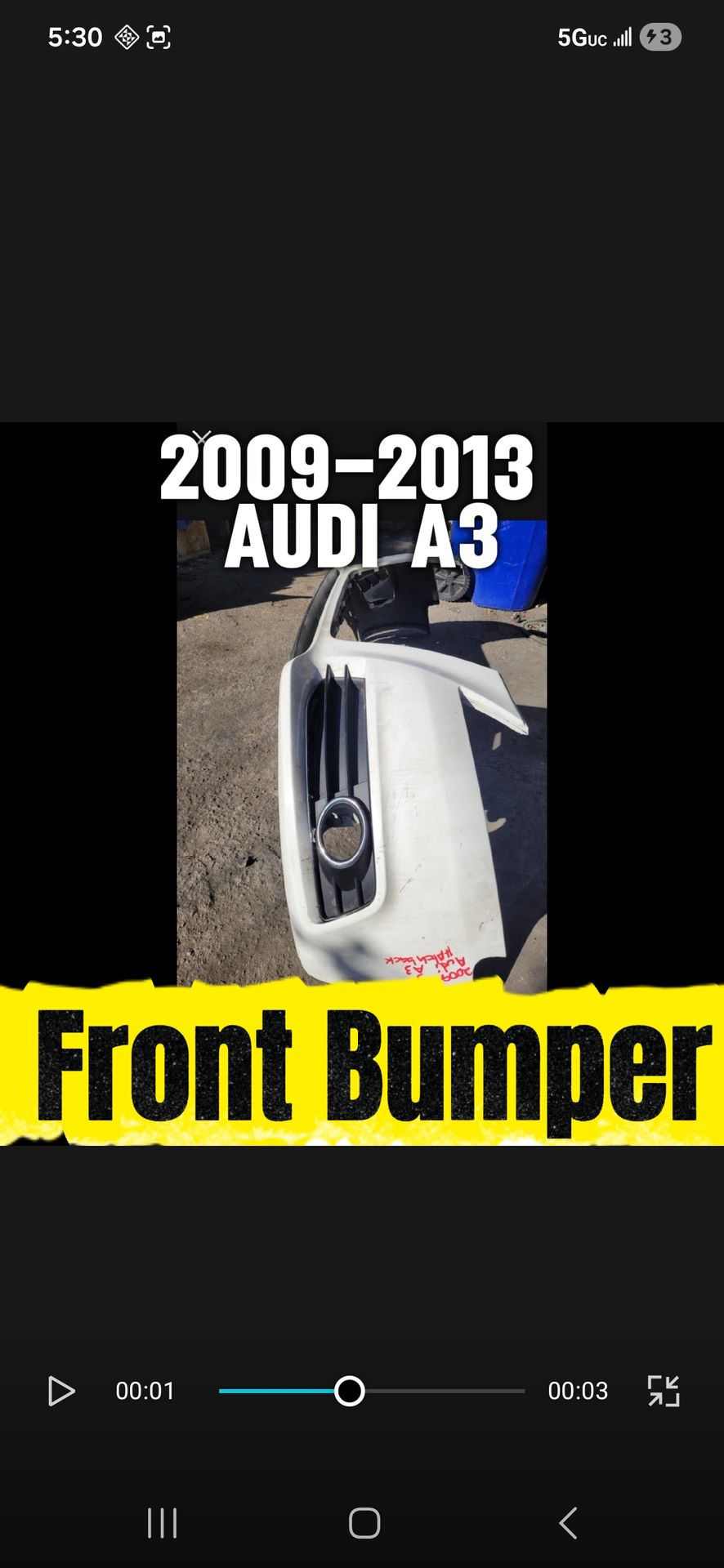 2009/2010/2011/2012/2013 Audi A3 Front Bumper Cover