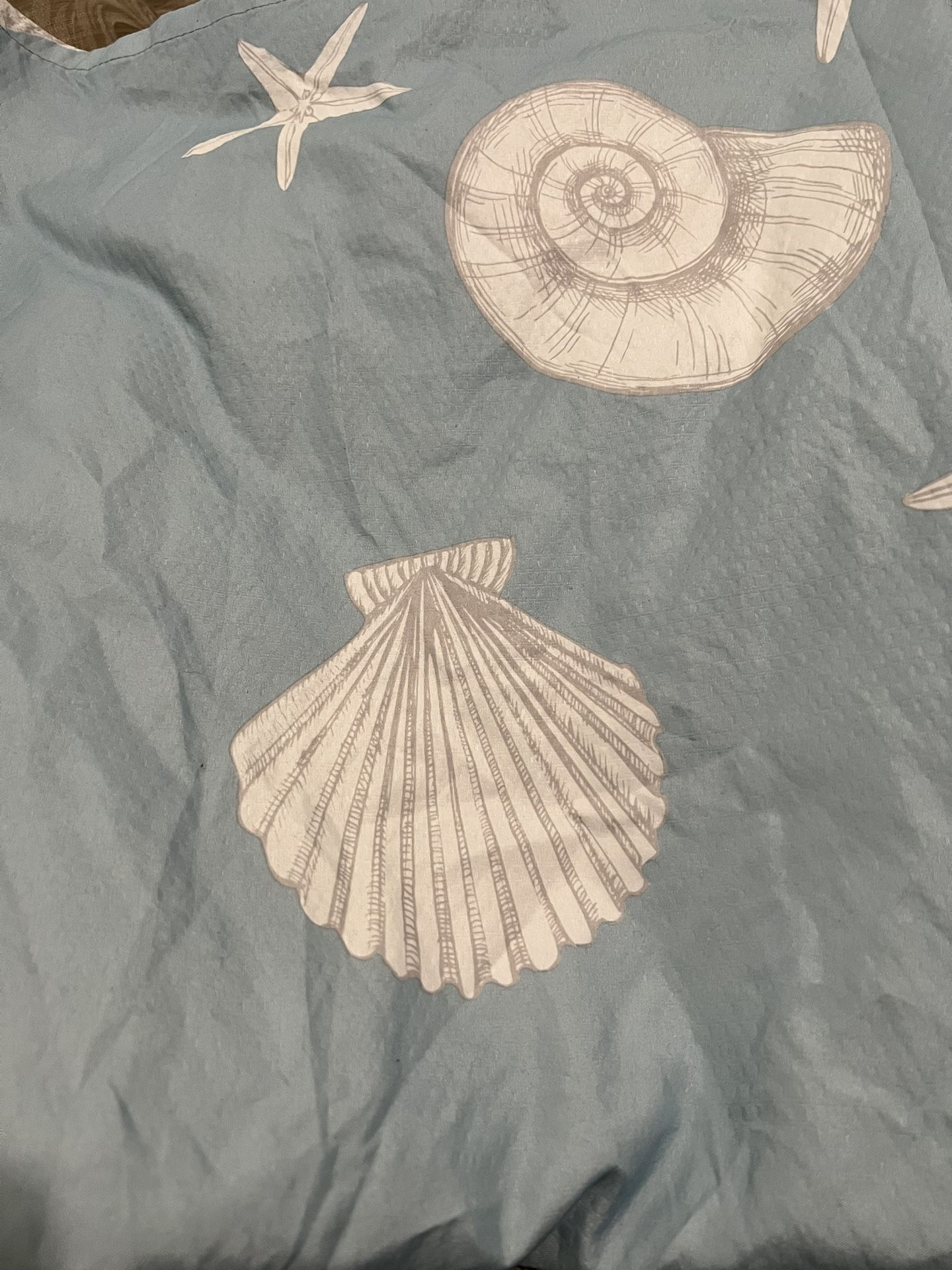 Used shower curtain only Washed and cleaned Beautiful light blue