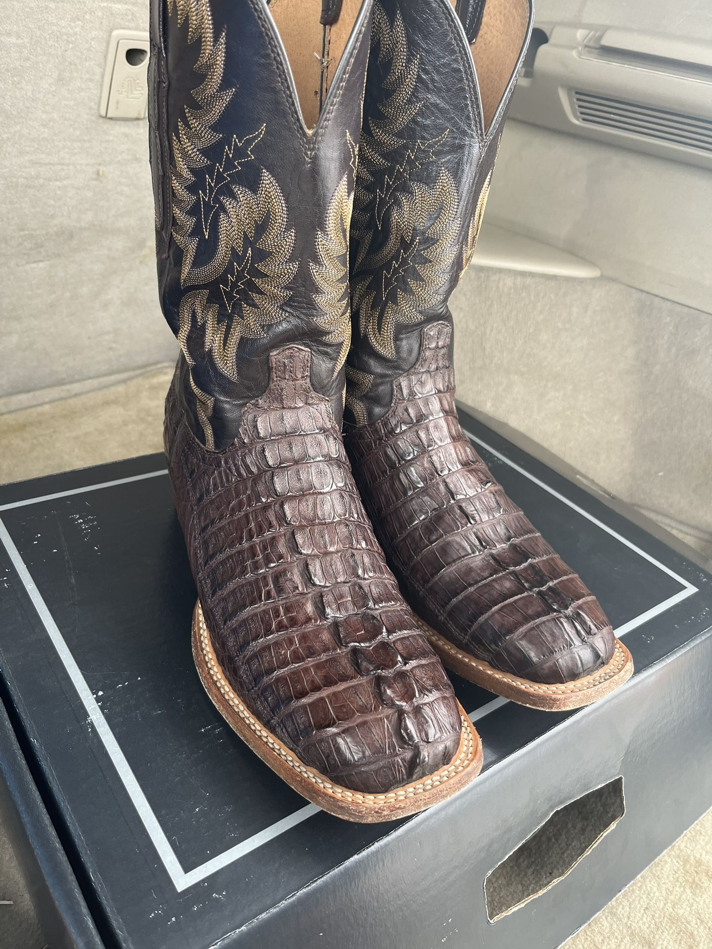 Barely worn, paid $900 for them Comes with box, exotic leather conditioner and a brush