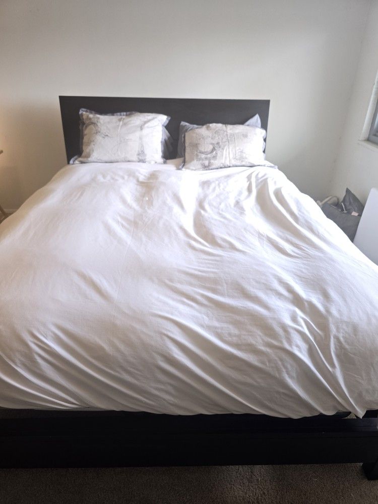 Queen-sized bed, headboard, boxspring, dresser, mirror