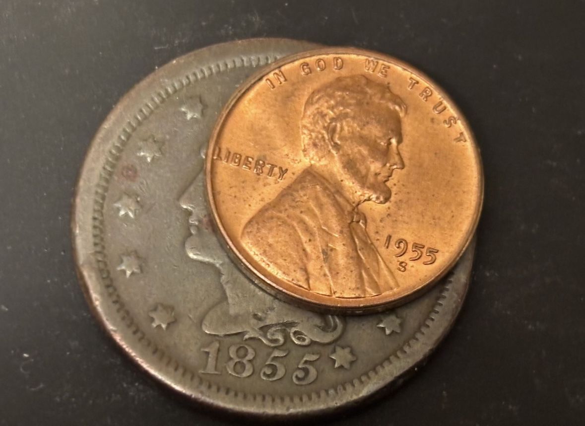 1 cent 1855. Antique coin USA. Rare ,collectible For collection, hobby, decoration, fun , history, memory