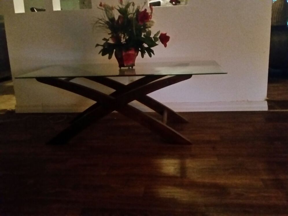 Glass Table wood stand. Very good condition (LET MAKE A DEAL TODAY)