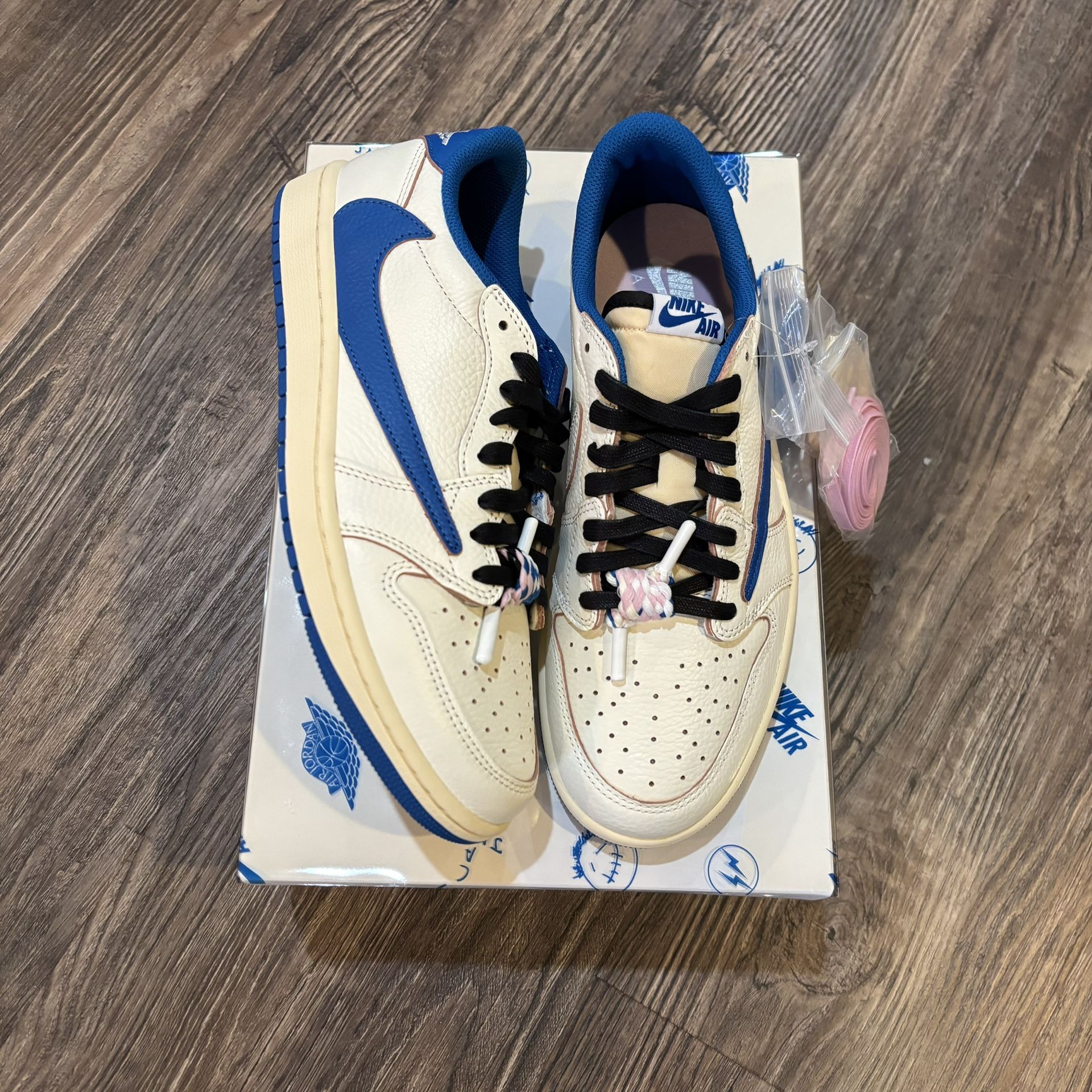 Air Jordan 1 Low Fragment x Travis Scott Sail Military Blue Size 9.5
