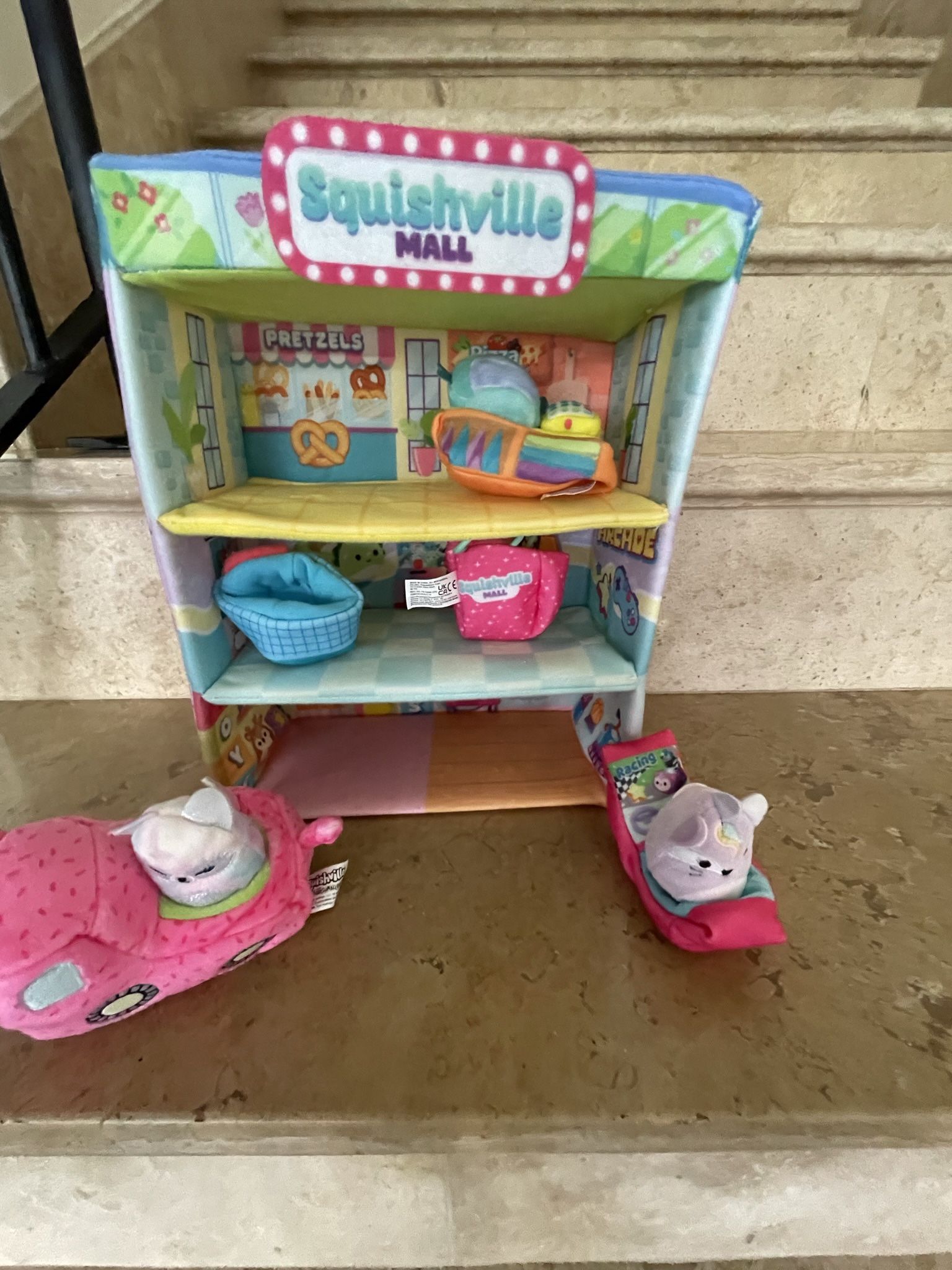 Squishville Mall with 3 mini squishmellows, and other accessories. Amazing condition!