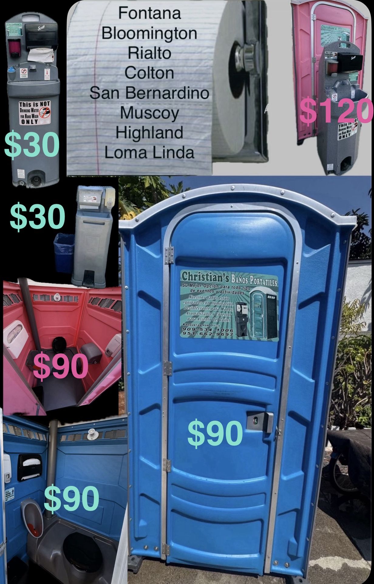 1 porta potty = 90$ 1 porta potty 1 handwash station =120$ 2 porta potties 1 handwash station = 200$ 1 porta potty with a sink inside = 110$ 90$ un baño 30$ el lavamanos portátil 110$ un baño con el lavamanos adentro 200$ dos baños y el lavamanos portátil Porta potty Porta potties Baños portátiles Portable toilets