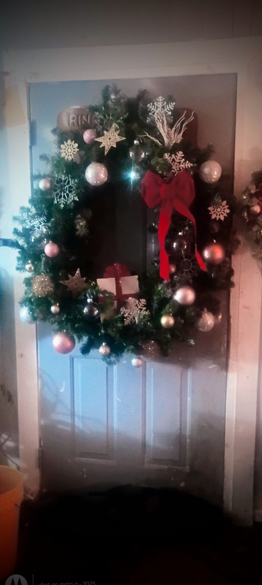 New artificial Christmas wreath handcrafted beautiful 44 in x 44 in it will take half your front door !!!$45 or best offer and that's a great deal