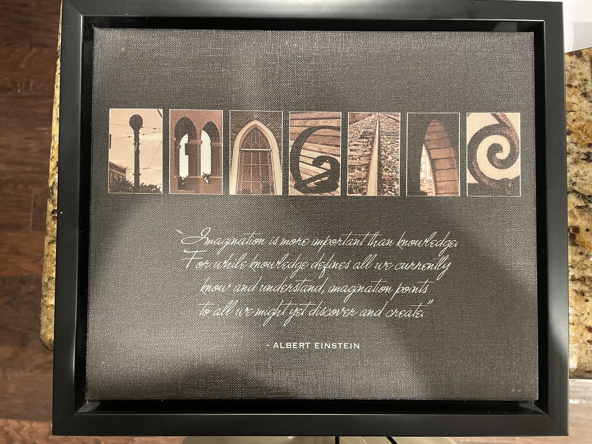 “Imagination is more important than knowledge. For while knowledge defines all we currently know and understand, imagination points to all we might yet discover and create. “. Albert Einstein.