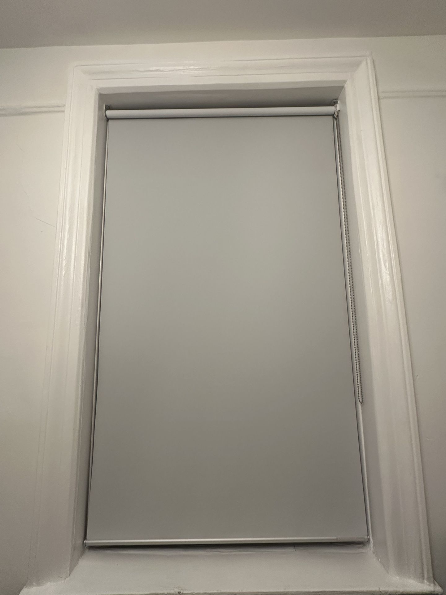 100% Blackout Roller Shade with Thermal Insulated, UV Protection Fabric. Lightgrey, dimensions 40" W x 72" H 📍Kensington, Brooklyn 💰Price: $20