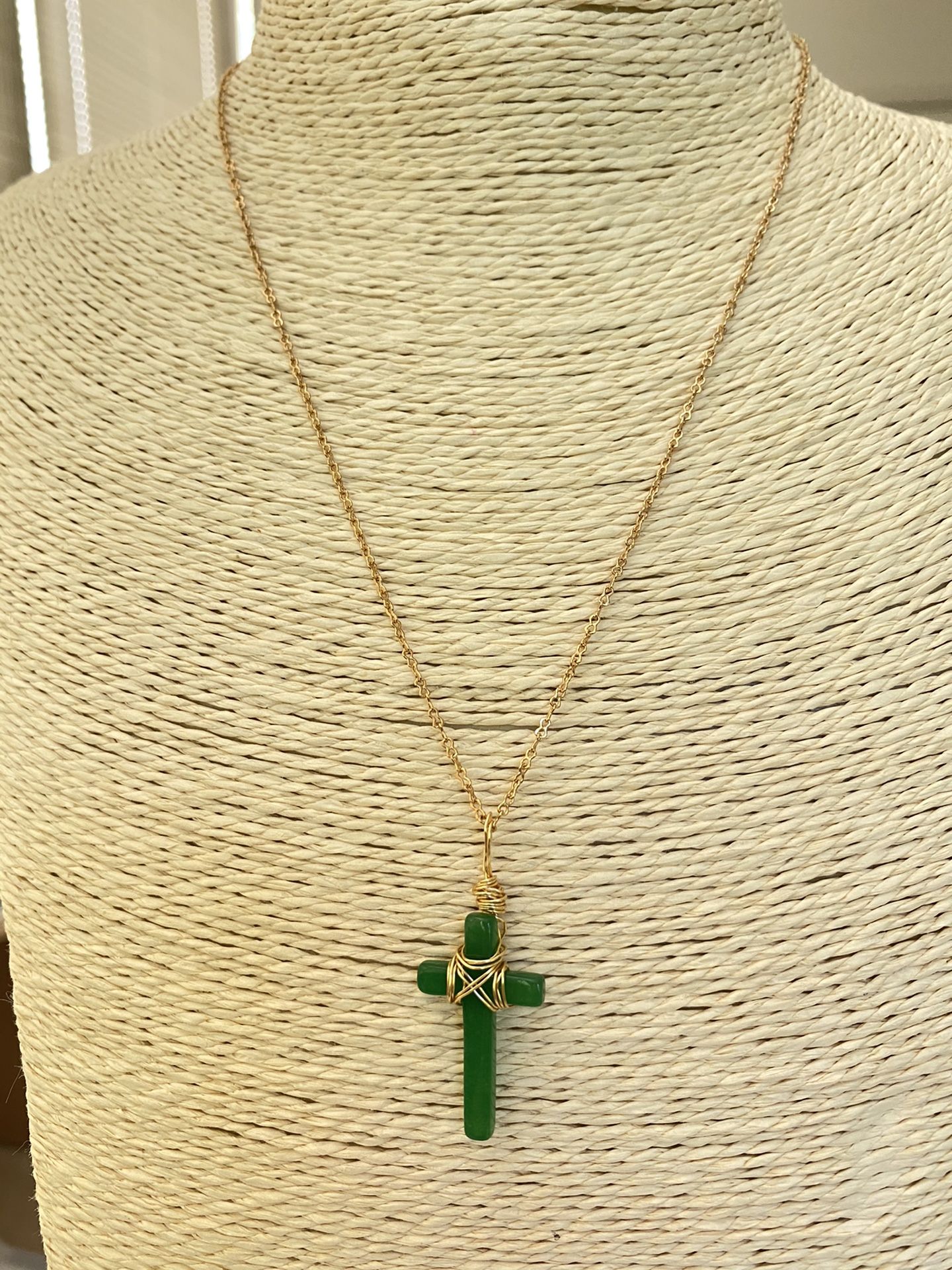 High-quality gold-plated. Natural green jade cross pendant necklace. Hand-made 18k GP chain length 17 inches (43cm) cross pendant 1.5*3cm unisex