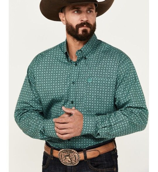NEW CINCH MEN'S GEO PRINT LONG SLEEVE BUTTON-DOWN WESTERN SHIRT SIZE: L SHIRT (POSSIBLE BIG /TALL)