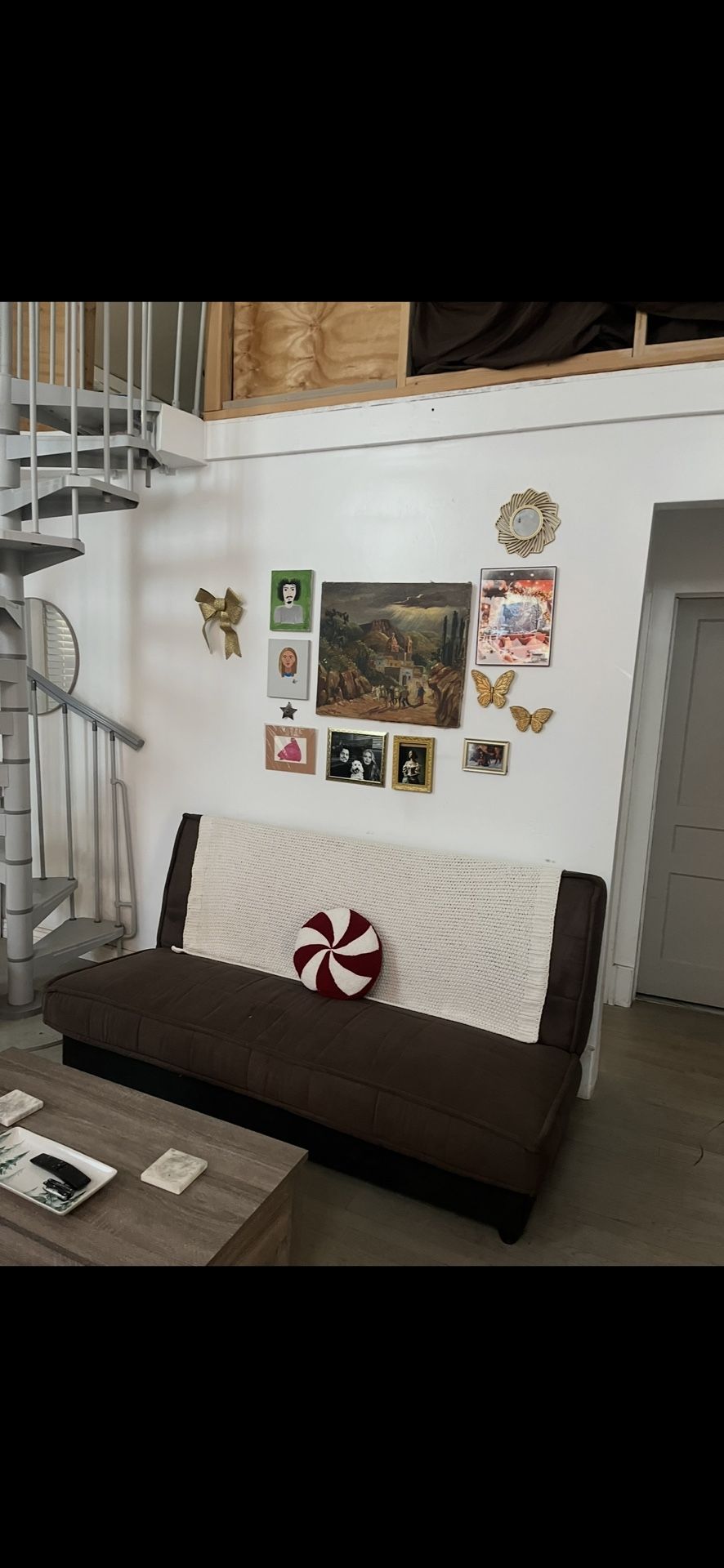 $40 OBO MUST PICK UP It comes with a green cover if you’d like. It is brown. I included a picture of it when I first got it. It’s still holds up! A couple of tears in the back. And needs a good vacuuming But it gets the job done.
