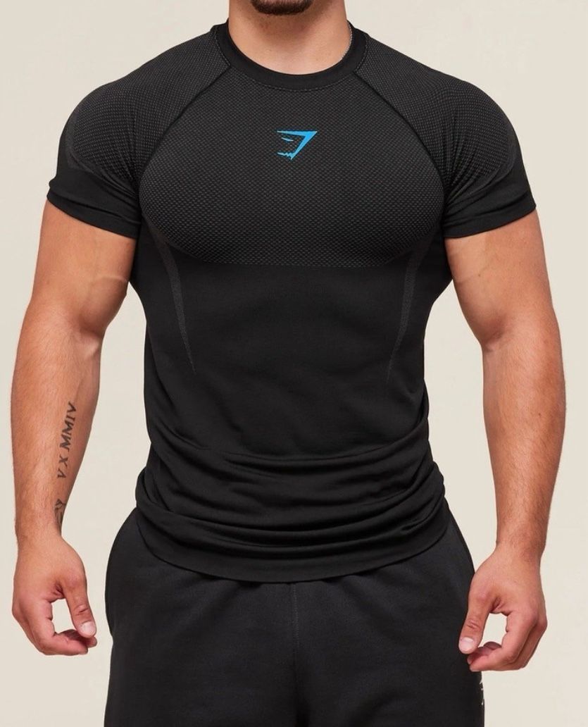 Gymshark Onyx 5.0 Seamless T-Shirt - Black/Onyx Grey w/ Blue logo