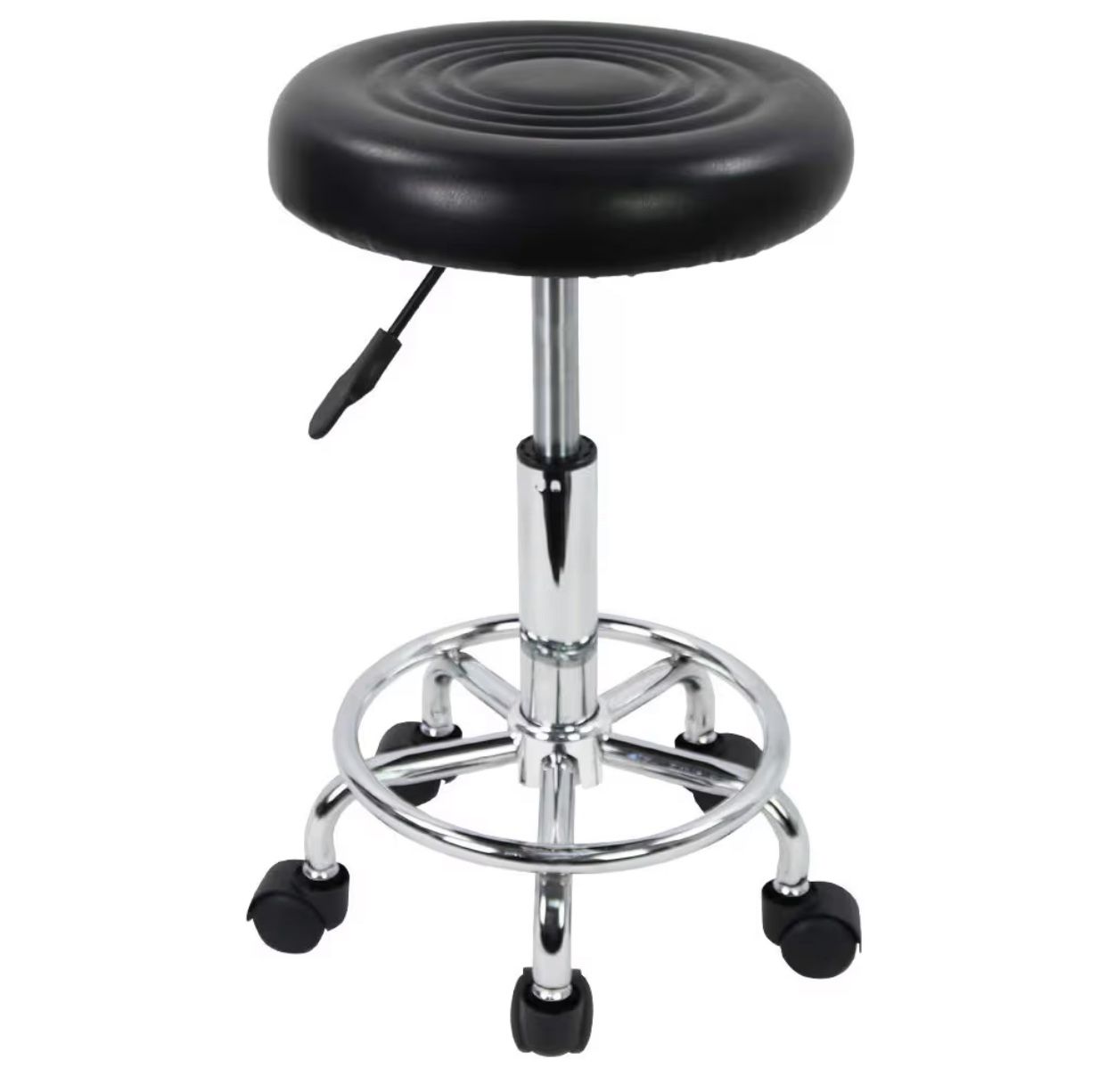 PU Leather Modern Round Rolling Stool with Footrest Height Adjustable Spa Drafting Salon Tattoo Work Massage Stools Task Chair Small (Black)