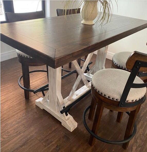 Brown/ Off White Color 4 Upholstered Bar Stools and Two Tone Dining Table Dining Set 👌 Dining Room - Kitchen Set 👍 Brand New 👈