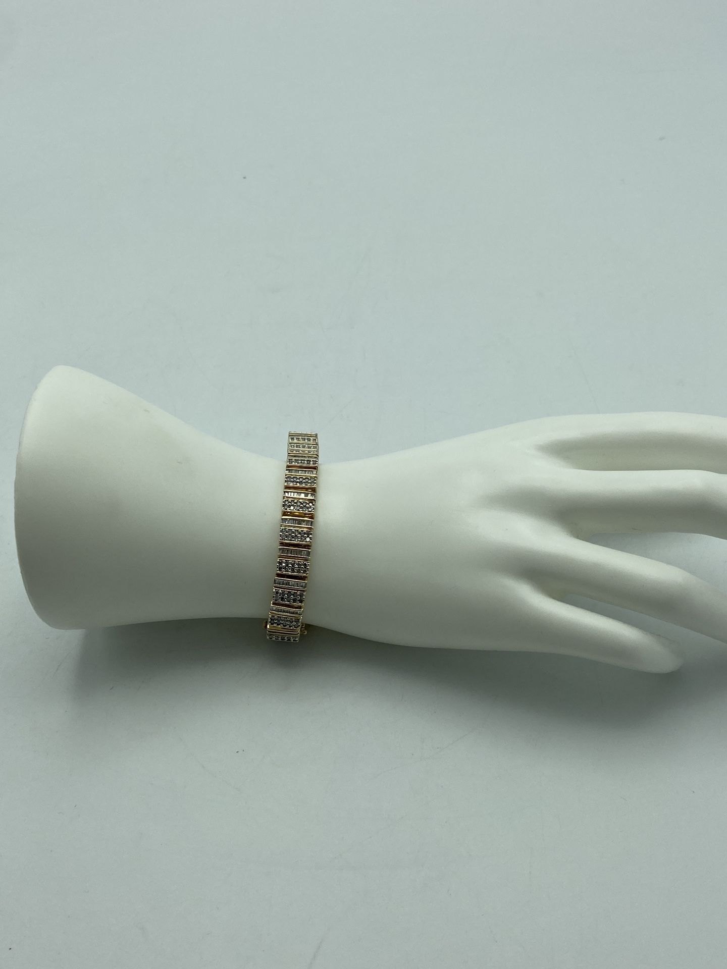 Pre owned in like new condition. This bracelet is made of 10kt yellow gold, it has 1.00cttw of diamonds. It weighs 21.50 grams and it’s 7” long. Message me with questions or offers! Pick up only at Sterling and Knight Jewelry and Pawn in Hinsdale.