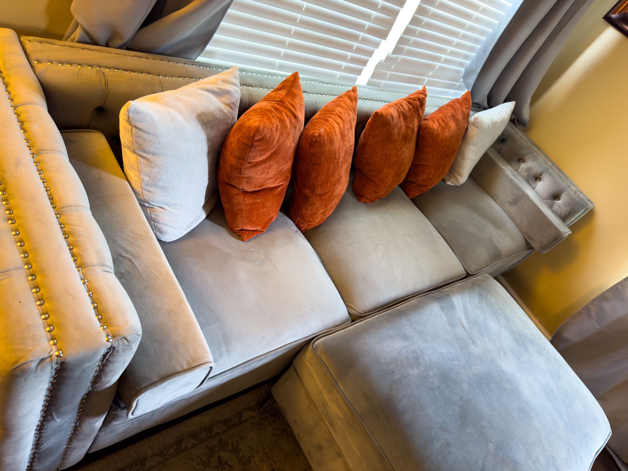 Upgrade your living space with this chic grey tufted couch and matching ottoman. Featuring a classic design with button-tufted detailing and soft, durable fabric, this set offers both style and comfort. The sturdy frame and plush cushions ensure lasting durability, while the versatile ottoman adds functionality as a footrest or extra seating.