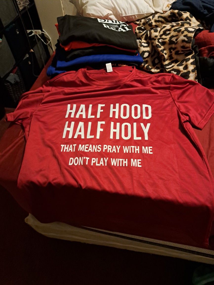 All of these shirts have not been worn at all. The pants have never been worn at all. The price says 100 but that's for all of the clothes I have posted. There is 3 post all together with all the clothes I'm selling. Contact with any questions. Will to meet if need to