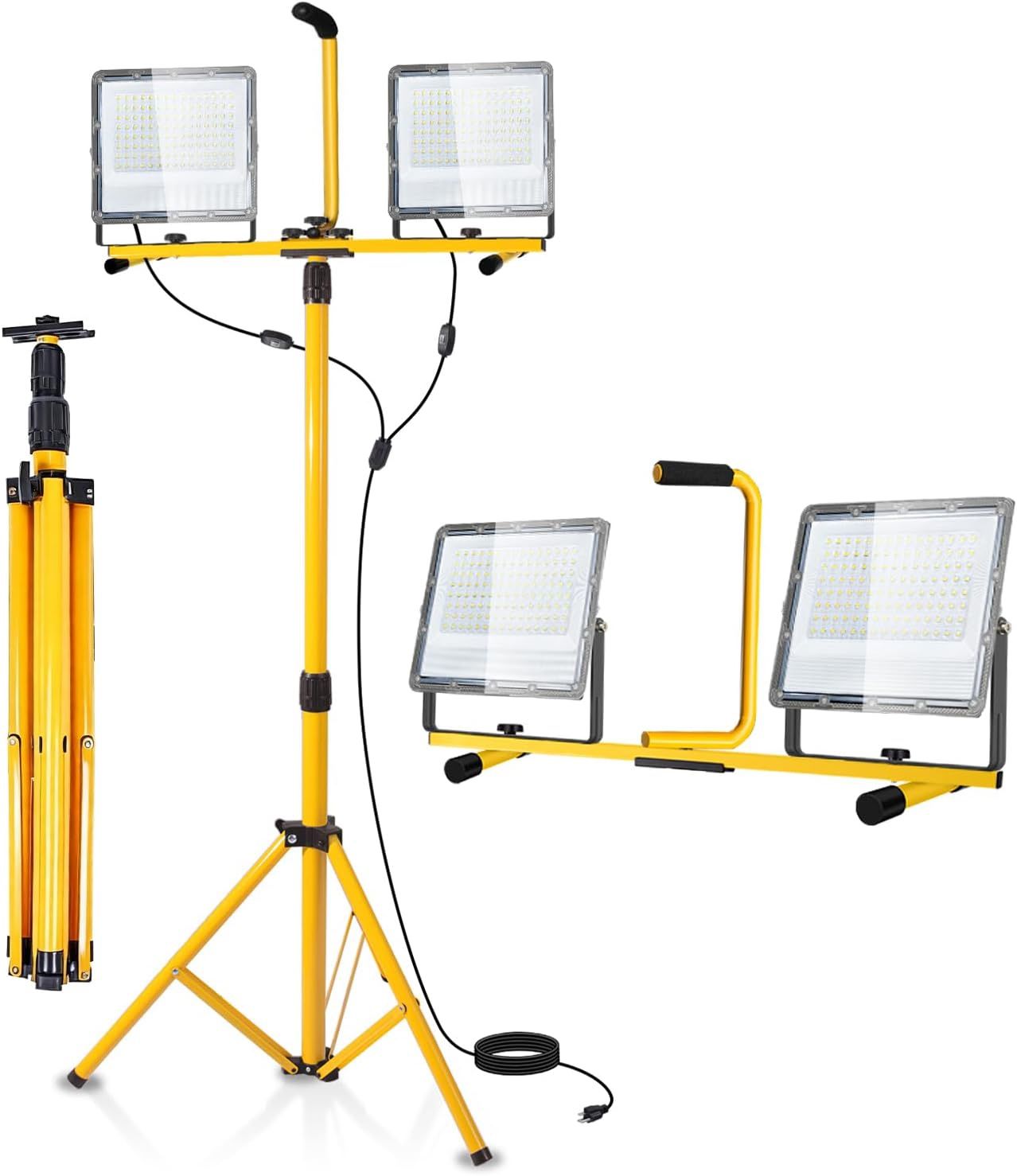 40000 Lumen LED Work Light with Stand, 2-Head Adjustable Work Lights with 16.5FT Extended Cord, IP65 Waterproof Work Lamp for Indoor & Outdoor Job Sit