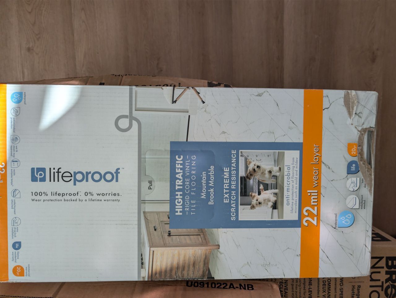 Lifeproof Rigid Core Vinyl Tile Flooring 22mil High Traffic Mountain Brook Just one box 9 pieces Pick up 92647
