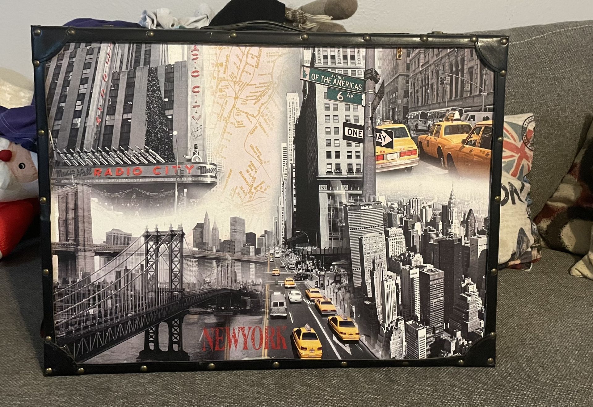 Vintage NYC scene print luggage. Asking $50, but am open to offers.