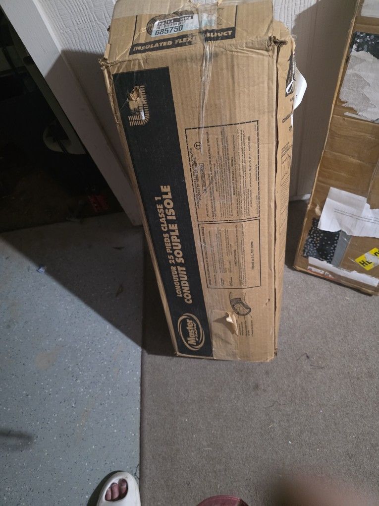 a Master Flow insulated flexible duct. It is used in HVAC systems and some venting applications. The product is 25 feet in length. It has R6 insulation, which provides greater thermal efficiency. The duct is covered in a heavy-duty, silver jacket for durability. It is ETL listed and meets the UL181 standard. Translation LENGTH 25 FEET CLASS 1 INSULATED FLEXIBLE DUCT PRECAUTIONS PRECAUTIONS FOR THE USE OF THIS PRODUCT FIBERGLASS PRODUCT WARNING RISK OF CANCER IRRITATION OF THE RESPIRATORY TRACT, SKIN AND EYES PREVENTIVE MEASURES EMERGENCY FIRST AID