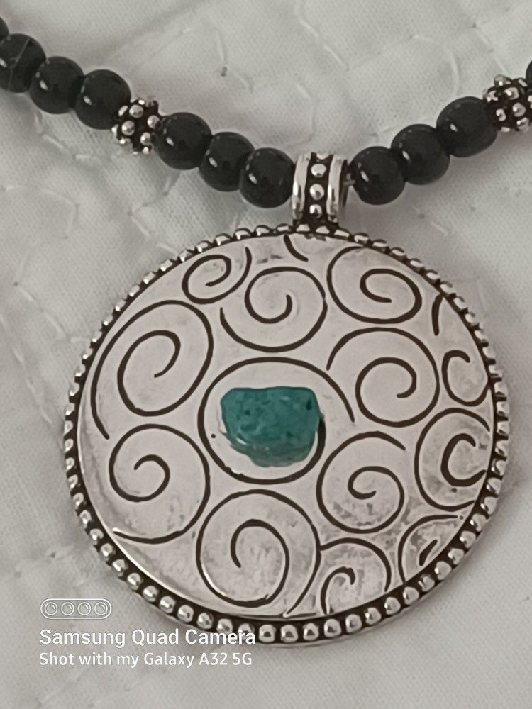16in. Southwestern silver tone genuine turquoise & onyx black Beaded necklace
