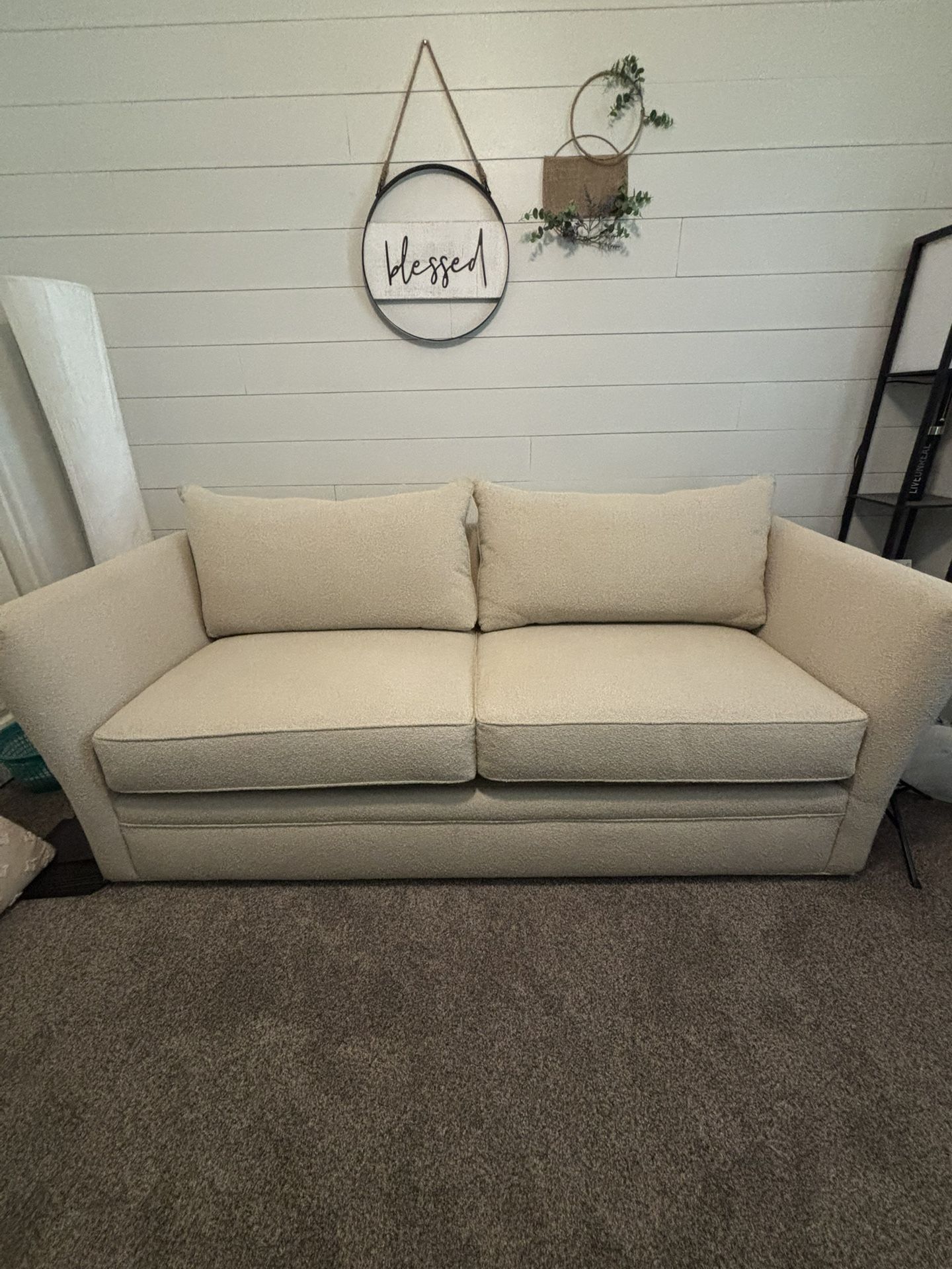 Full pull out couch; I bought this used 3 years ago, ready for another new home. Gently used. Mattress topper, sheets and pillows included! Great for guest room/office combo or air bnb! Pickup north Peoria area, it’s very heavy! Dimensions: 83 inches wide 37 inches long 30 inches tall 90 in long when fully pulled out