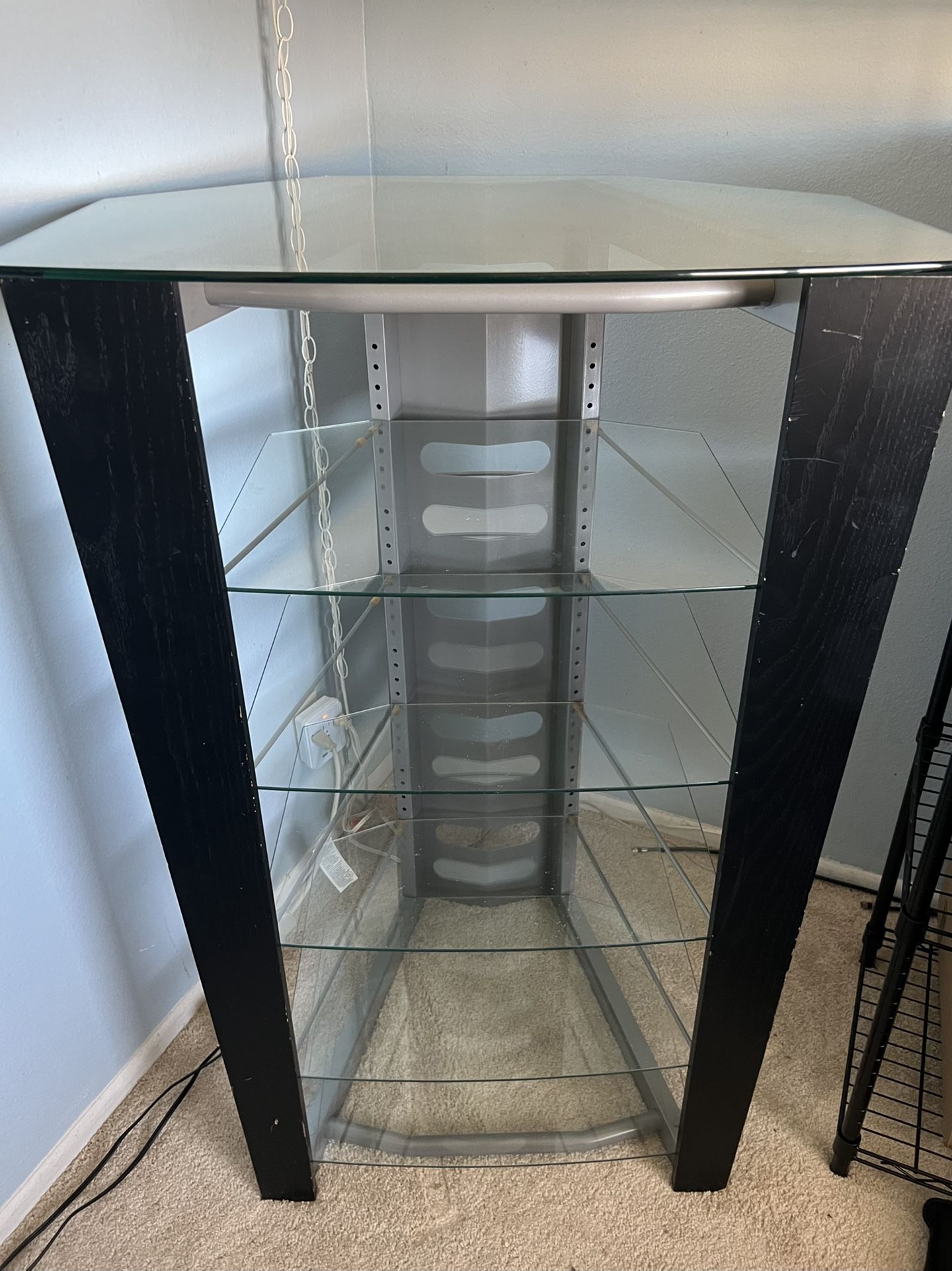 Glassa corner TV stand in good condition. Dimensions: 30 inches wide X 45 inches tall X 23 inches deep
