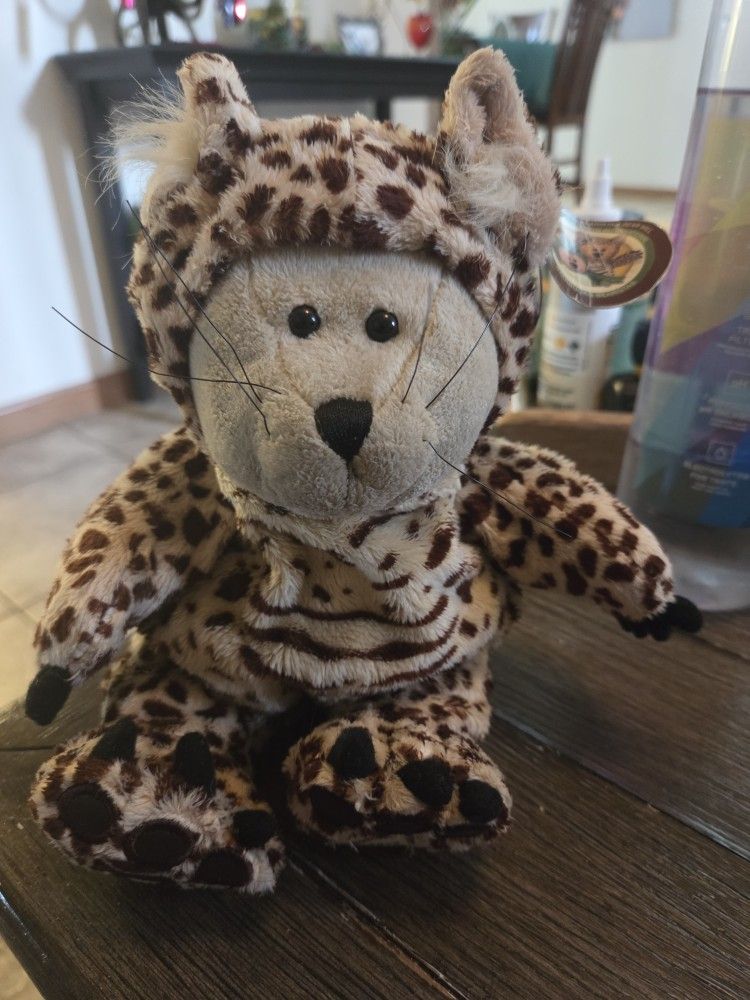 Starbucks Bearista Bear – 2005 Leopard / Cheetah (With Tags) Authentic Starbucks Bearista Bear from 2005, featuring a leopard/cheetah outfit. Plush is in excellent condition with original tag attached and appears never played with—kept for display/collection only. Original Starbucks Bearista Year: 2005 (tag on paw) Outfit: Leopard / cheetah costume Tag attached – includes conservation donation tag Perfect for Starbucks collectors, Bearista fans, or vintage plush collectors Condition: Excellent / like new Size: Small collectible plush