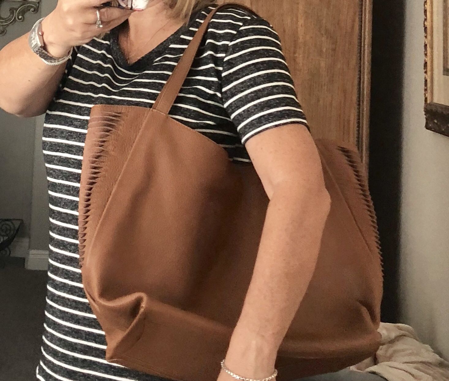 This is a brand new beautiful all leather Vince Camuto tote, over $200 brand new, could be used for a purse, tote, or diaper bag