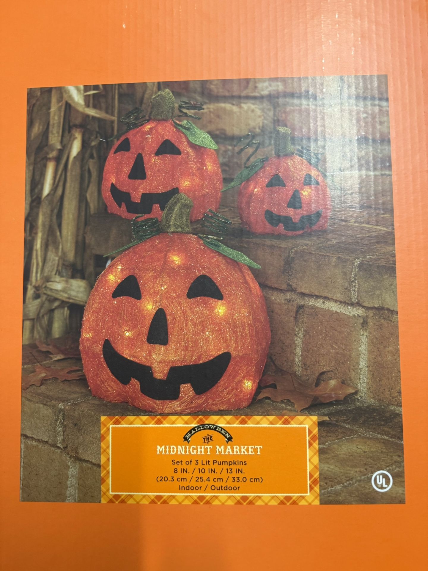 Set 3 Lit Pumpkins / Indoor / Outdoor