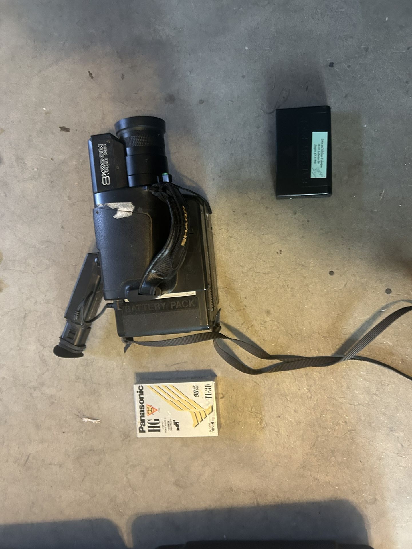Very old, high quality Video Recorder. Still functional, comes with charger, spare battery pack, and film cartridge. Complete with the case