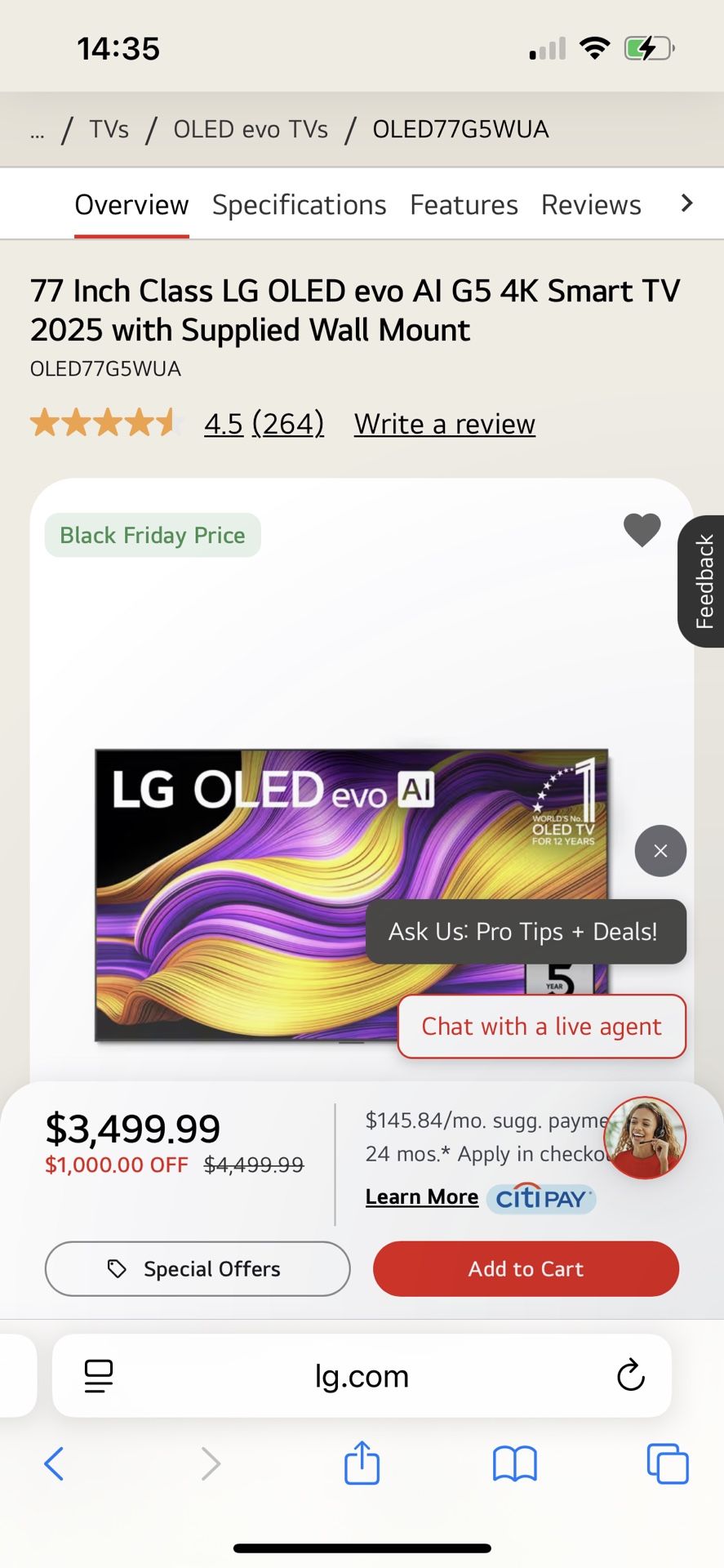 77 Inch Class LG OLED evo AI G5 4K Smart TV