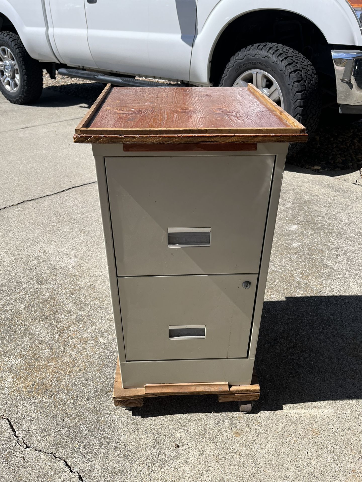 Custom table top cabinet with wheels built with two drawer filing cabinet. Great extra workspace and lockable storage with keys. pick up in Concord $20
