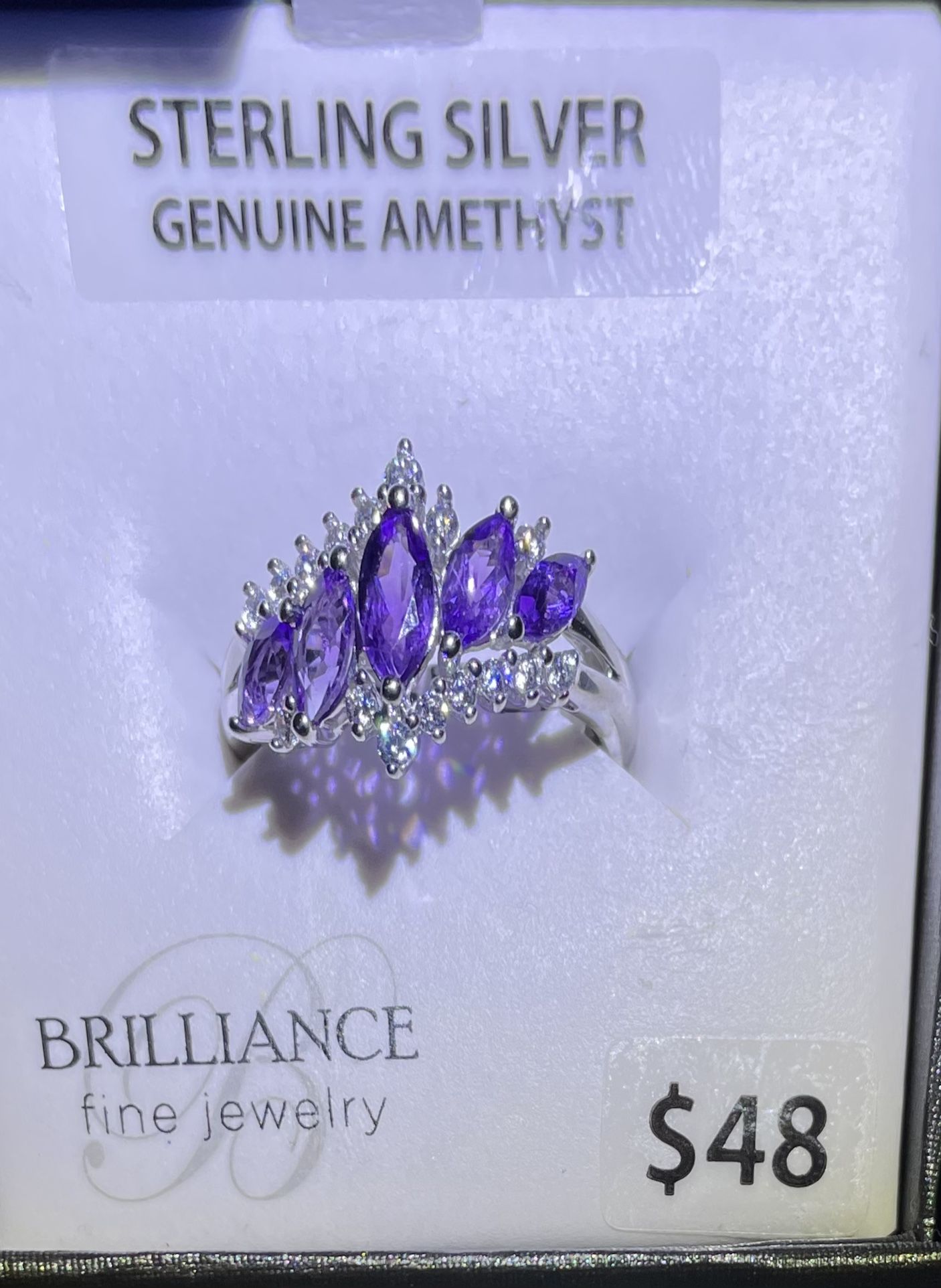 Brilliance Fine Jewelry Sterling Silver Genuine Amethyst and White CZ Marquise Ring Size 7 It's brand new never used still in its original packaging. #83