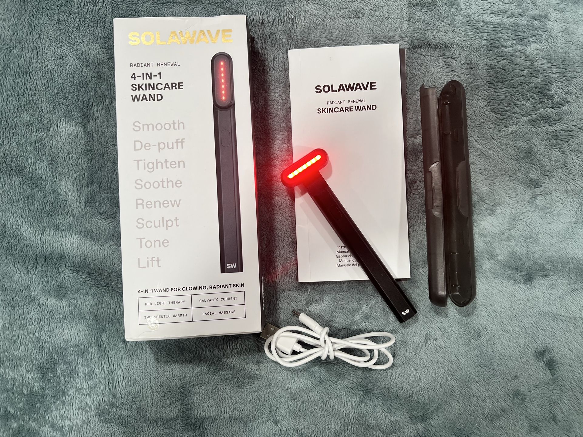 Solawave Skincare Wand & Serum – 4-in-1 Galvanic Current, Face Massager, & Red Light Therapy Wand. Brand new sells for $189.