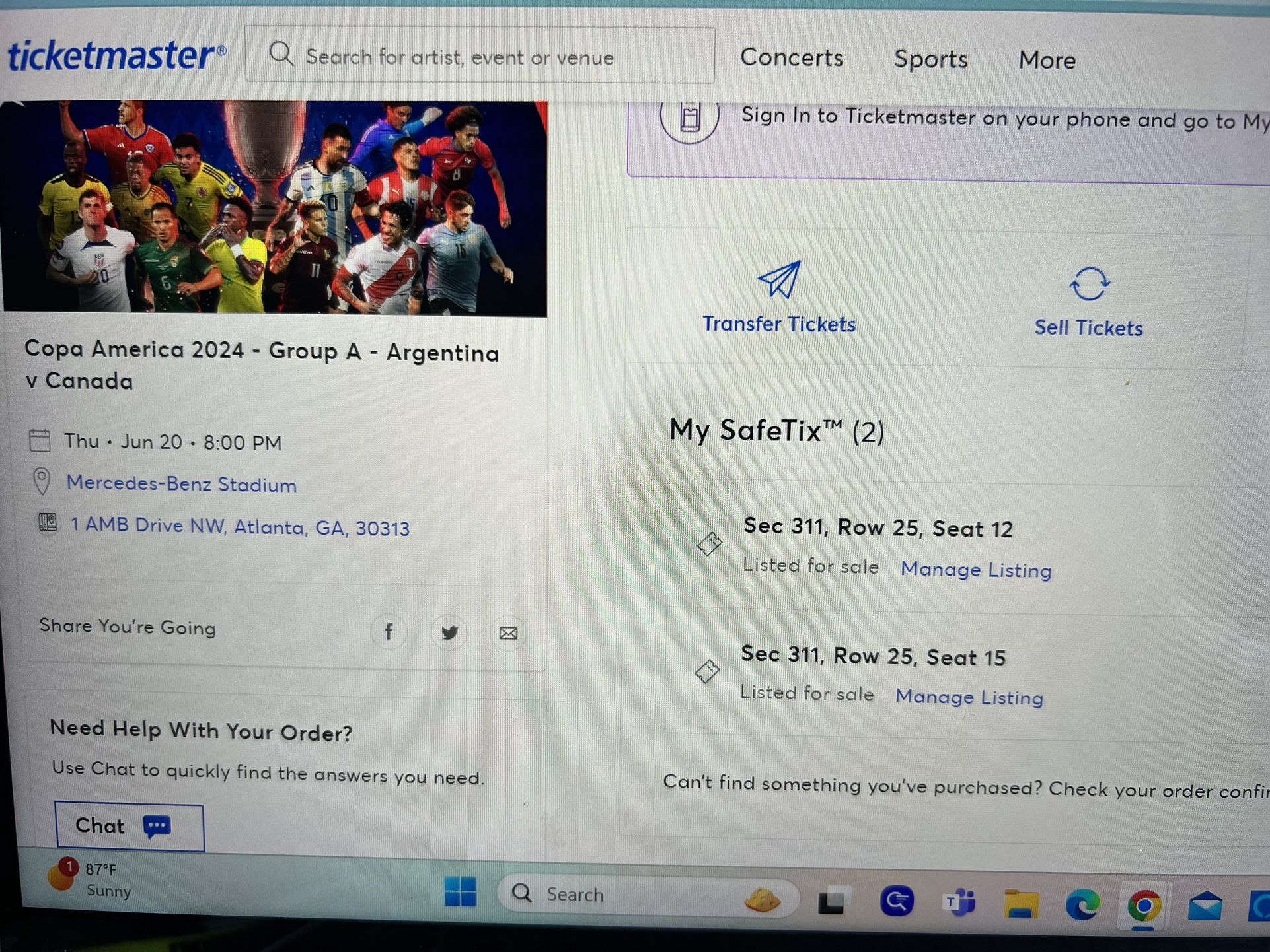 Atlanta Georgia June 20th 2 tickets for sale $300 each