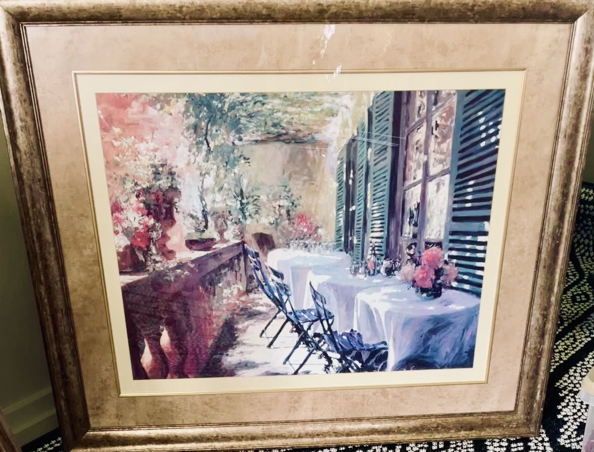 The Ivy Inn large framed prints from The Raschella Collection Famously known Raschalla inc. Pico Rivera, CA 38” x 46” Ready to hang with professional mounts Gorgeous colors, beautiful thick frame & matted. fade resistant glass - pictures do not capture stunning quality of artwork & frame!
