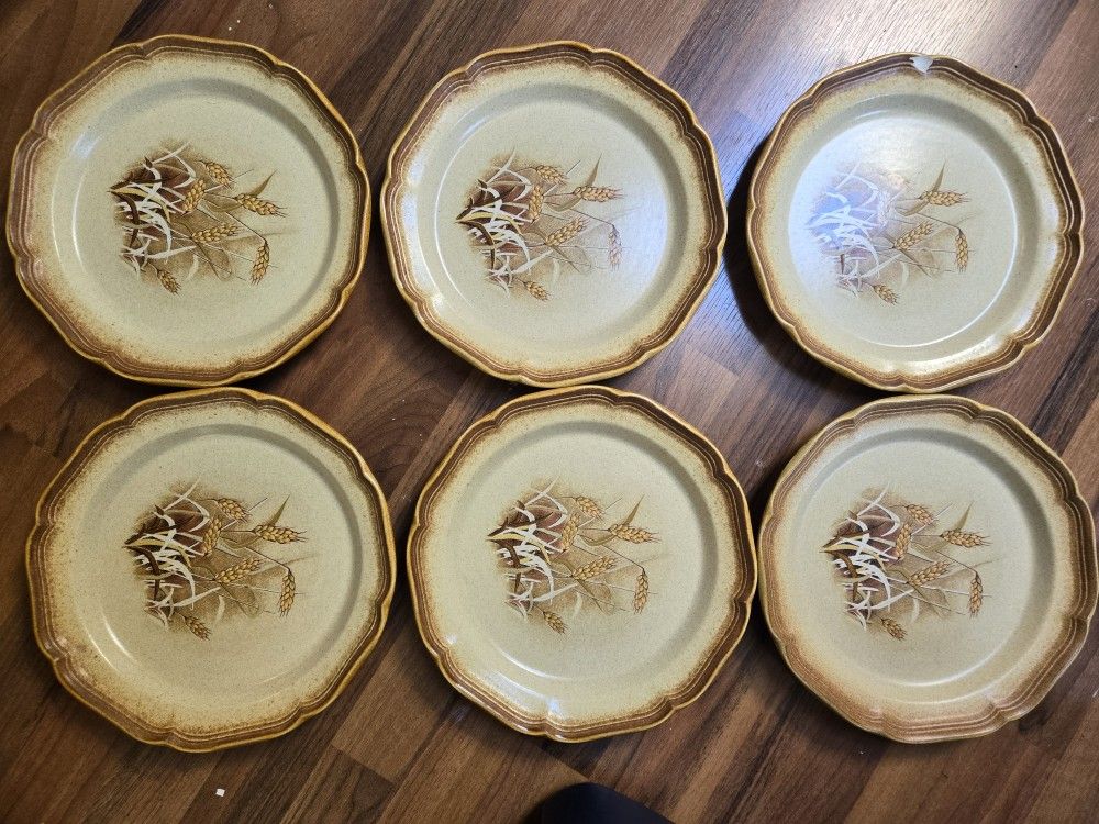 Vintage Milkasa Whole Wheat Plates, set of 6, made in japan, plates measure 11". 1 has small chip.