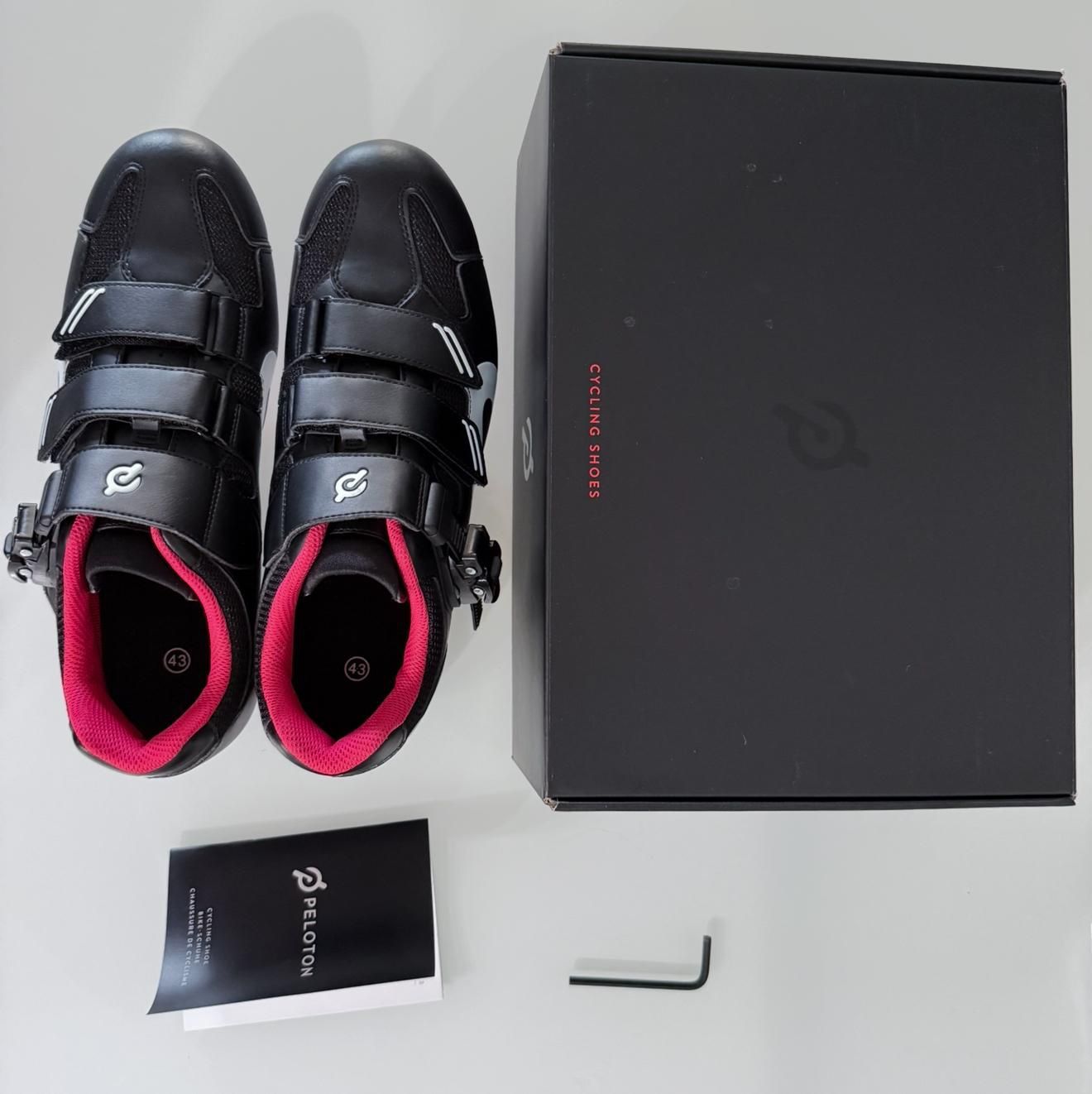 Take your cycling experience to the next level with these Peloton shoes! Designed for maximum performance, comfort, and stability with every pedal stroke. Features: V Size: Eur 43/ US 10 M Color: Black with red accents Includes Look Delta cleats for compatibility • Secure fit with buckle and Velcro strap closure Stiff sole for better power transfer J Perfect for Peloton bikes or any bike compatible with Look Delta cleats Condition: Brand new in original box with all accessories included. T Pickup/Shipping: Available for local pickup Don't miss the chance to enhance your ride with these premium cycling shoes!