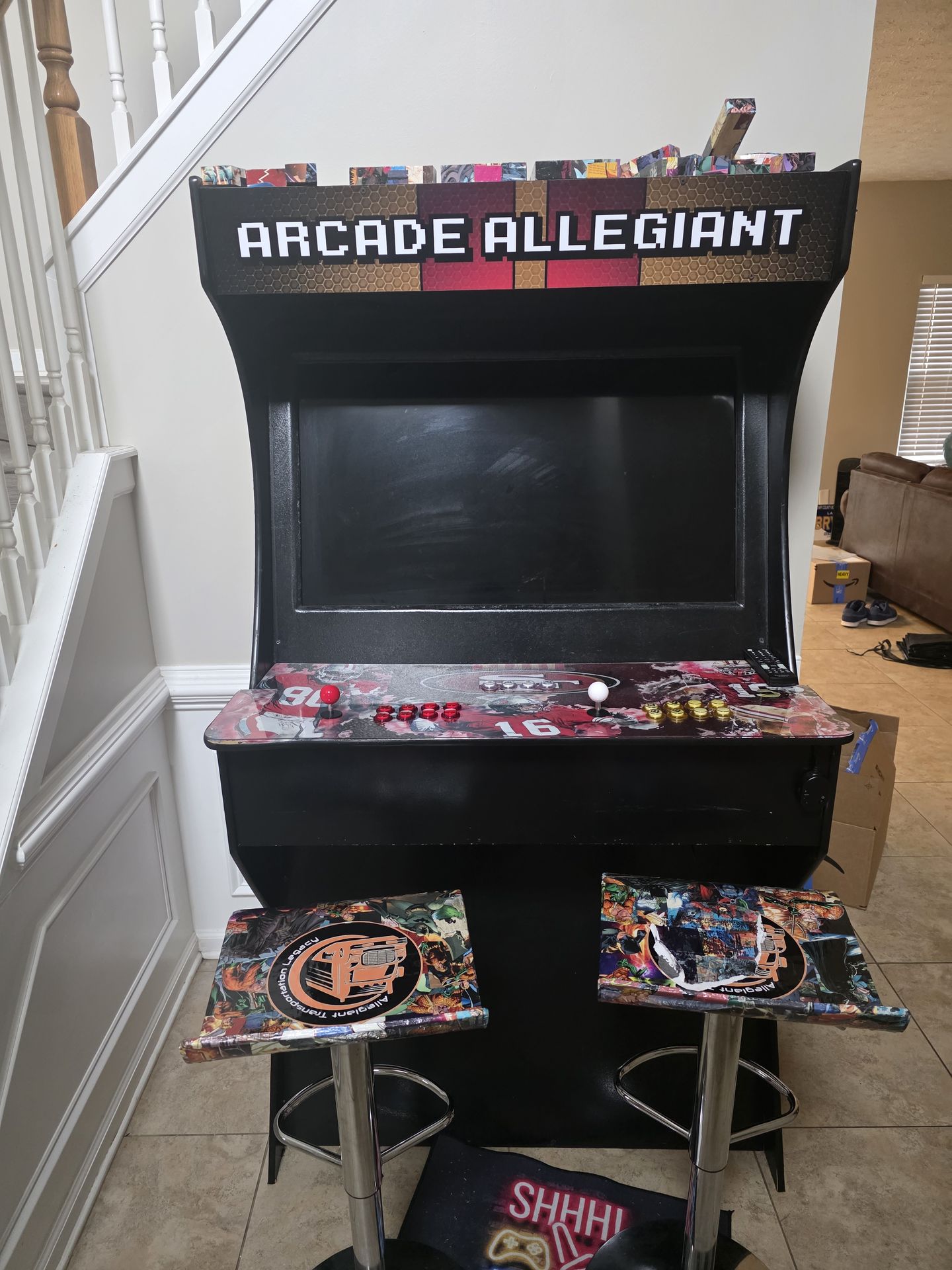Full sized arcade w/2 adjustable stools. Over 20,000 games from Atari, Sega, Playstation and more. Great for family and entertainment.
