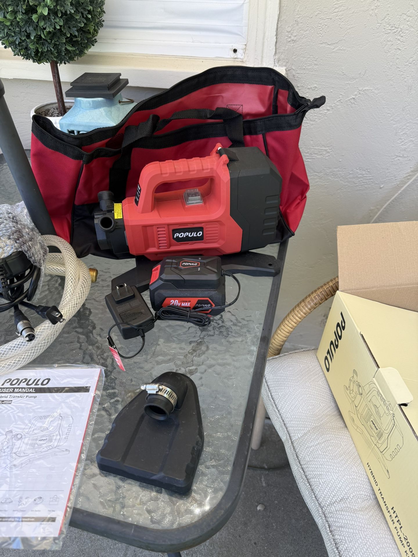 Brand New Water Transfer Pump. Thought I was going to need it to drain a bathtub but ended up fixing the leak so never used it.